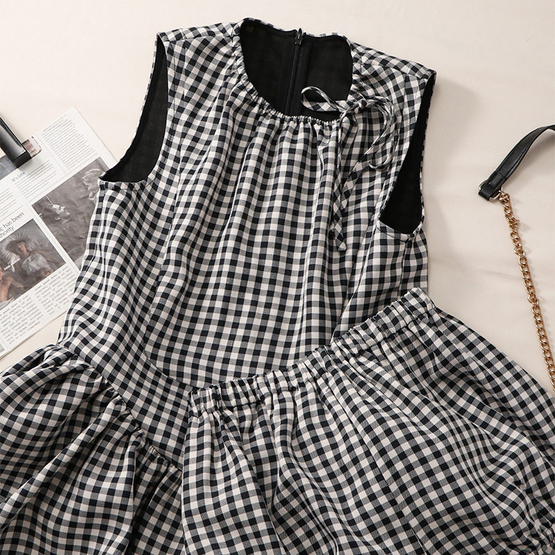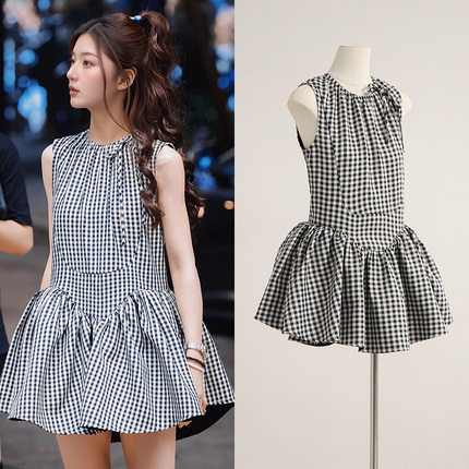 2026田曦薇同款千鸟格背心连衣裙感小个子法式修身短裙女夏配打底