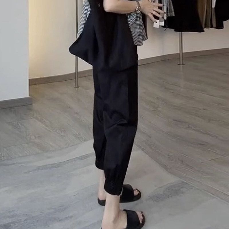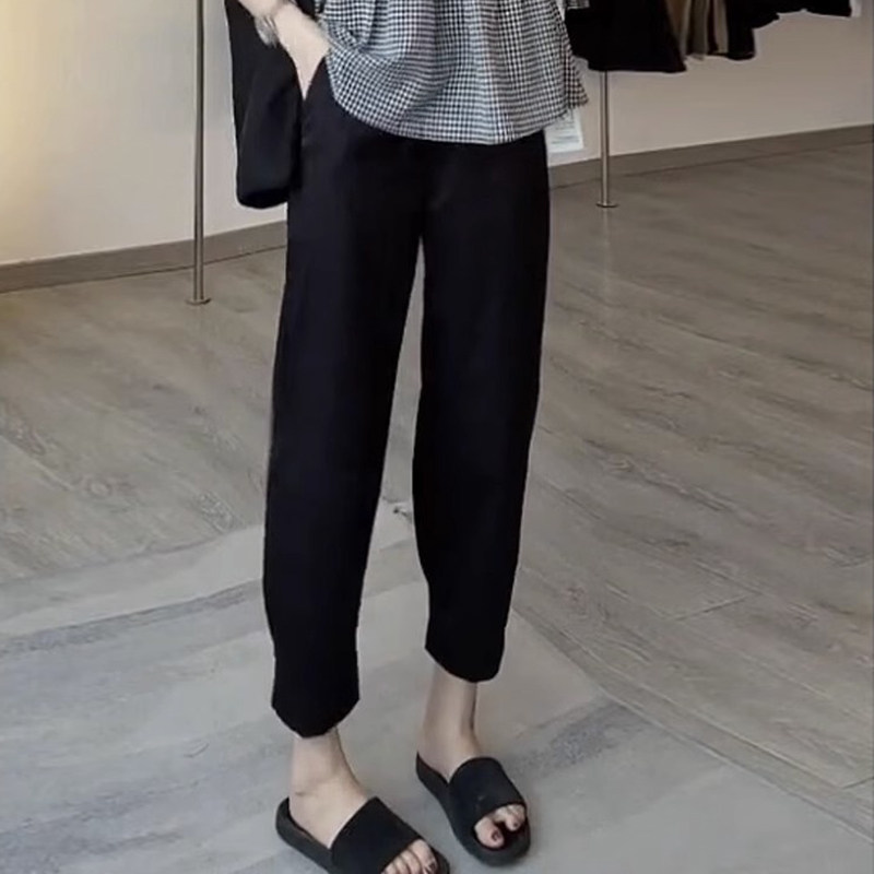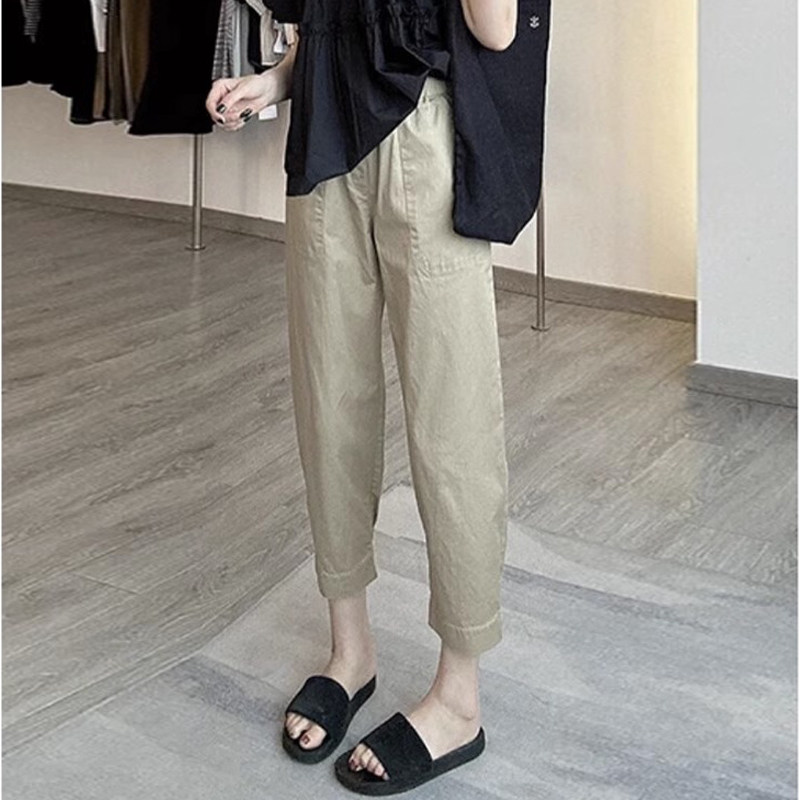 哈伦裤女士2025夏季薄款八九分小个子显瘦阔腿裤工装卡其色休闲裤