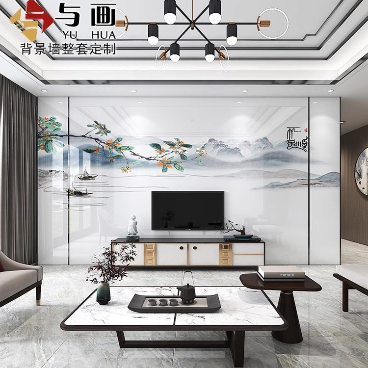 大理石电视背景墙瓷砖轻奢岩板新中式简约客厅石材大板装饰影视墙
