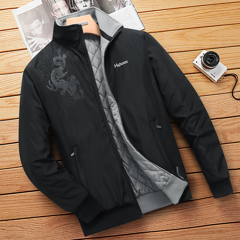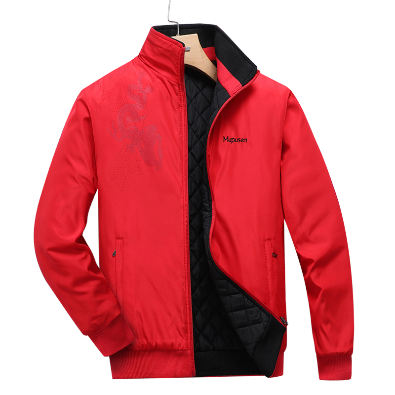 春秋冬夹棉夹克男红色外套龙年本命年双面穿立领防风加棉短款保暖