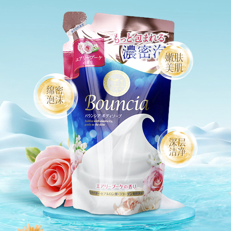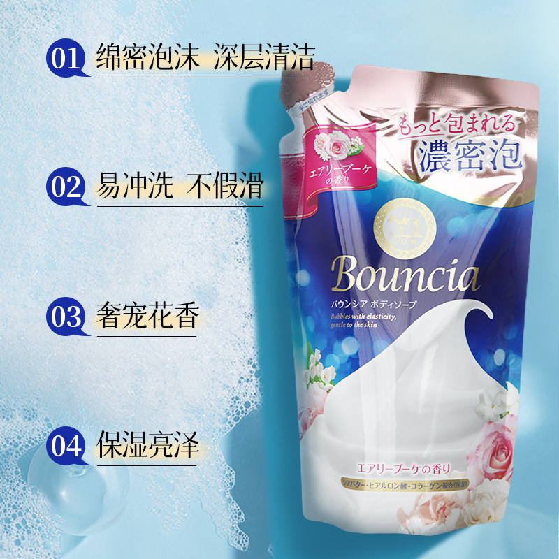 COW牛乳石硷碱进口沐浴露玫瑰花香补充包美肤泡沫绵密不假滑男女