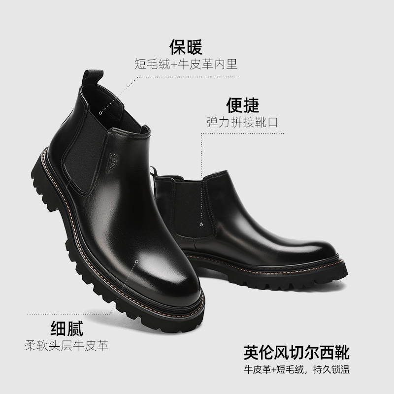 金利来皮鞋冬季加绒保暖切尔西靴男士时尚厚底真皮马丁短靴英伦风