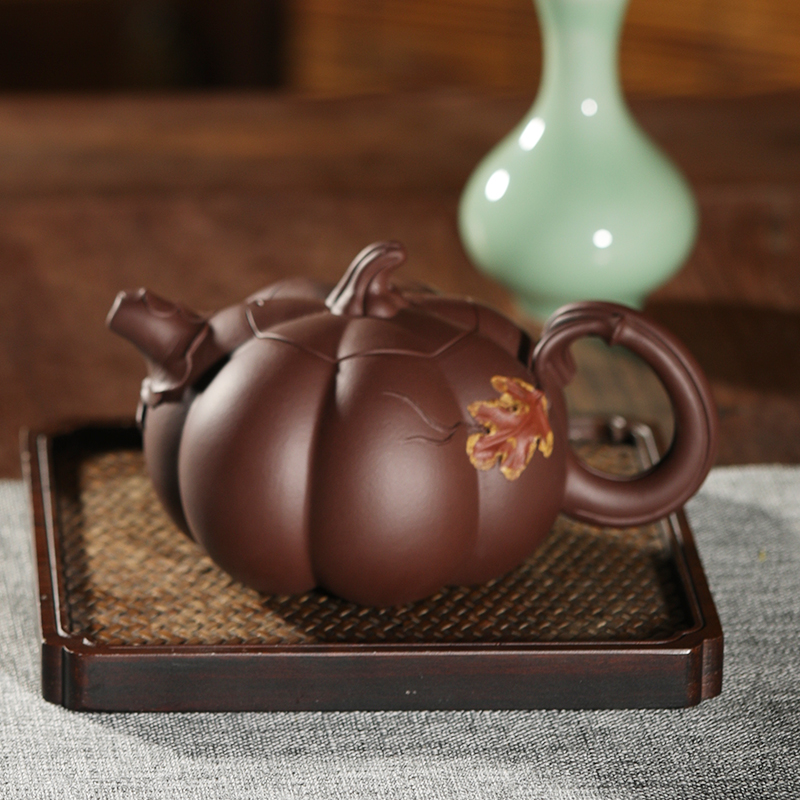 观复紫泥南瓜宜兴紫砂壶 仿生筋纹花器功夫茶具泡茶壶礼盒装