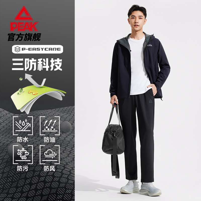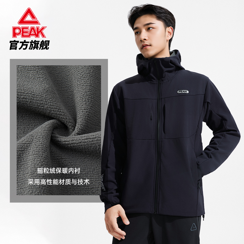 匹克三防软壳运动外套男加绒秋官方新款冲锋风衣户外商务休闲夹克