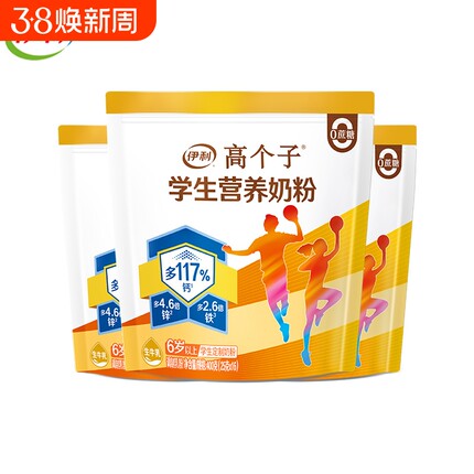 伊利高个子学生营养奶粉儿童青少年成长初高中生高钙铁锌早餐牛奶