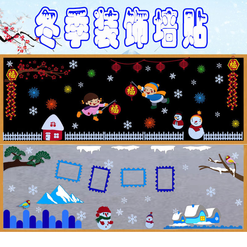 新年元旦冬季教室装饰墙贴画