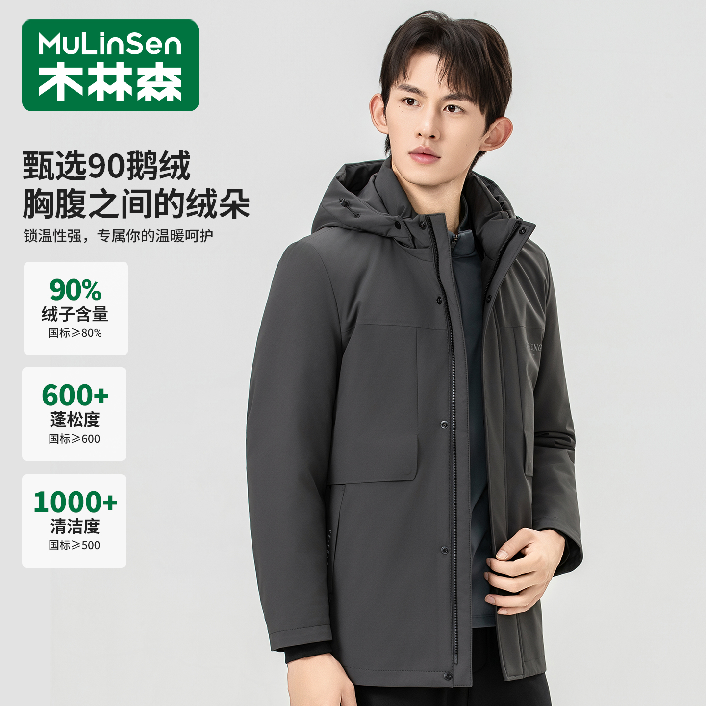 木林森羽绒服男款冬季新款外套加厚保暖鹅绒服连帽休闲防寒服V4