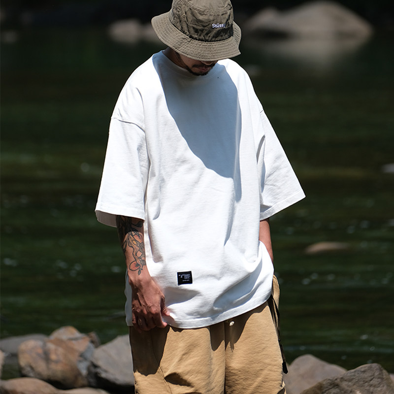 Quentin Marx男士纯色短袖320g重磅素T恤圆领宽松潮T白色打底衫夏