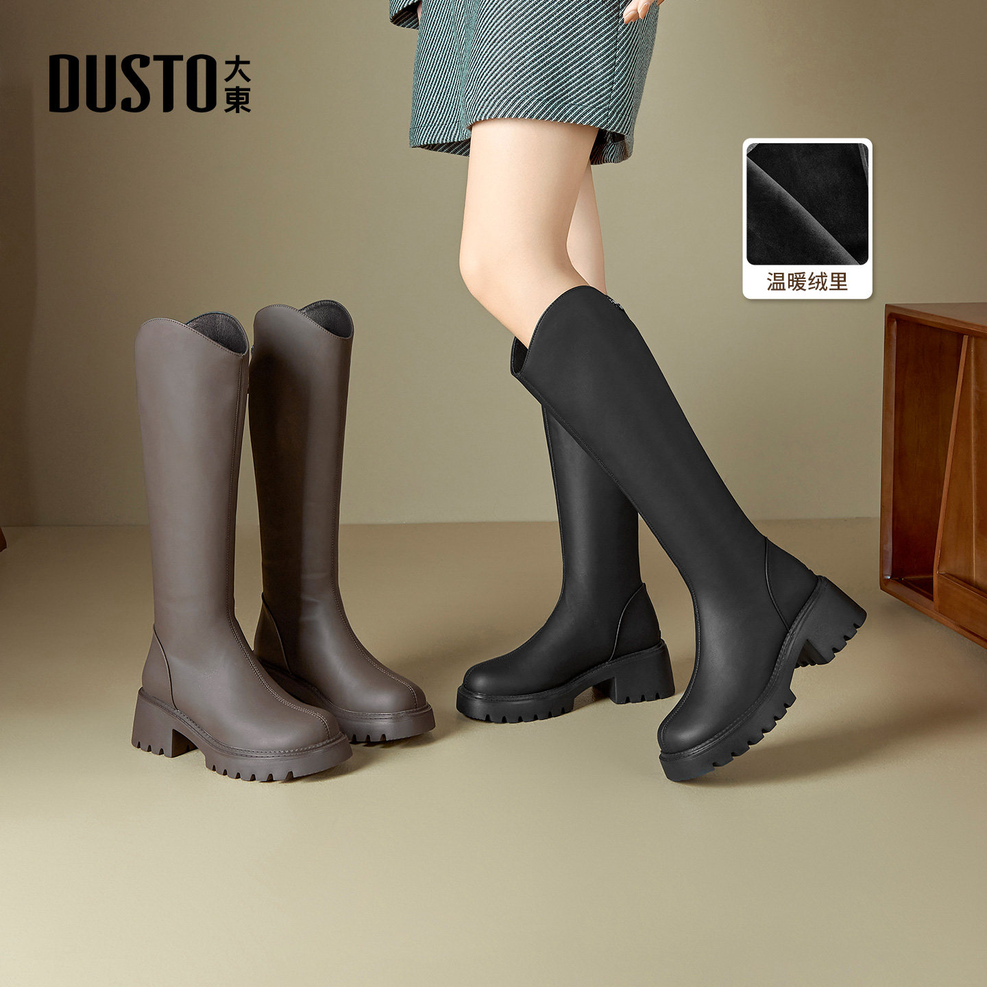 大东dd长筒靴子女2025新款爆款女靴秋冬时装靴黑色骑士靴高筒靴子