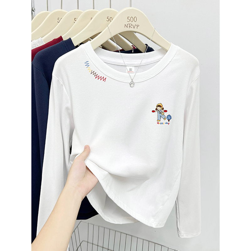 复古设计感正肩胖mm长袖大码女装t恤女韩系修身遮肉款弹力棉上衣