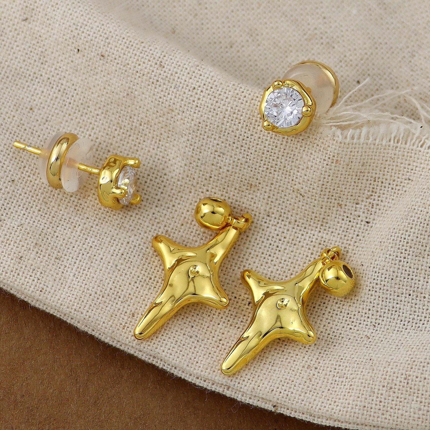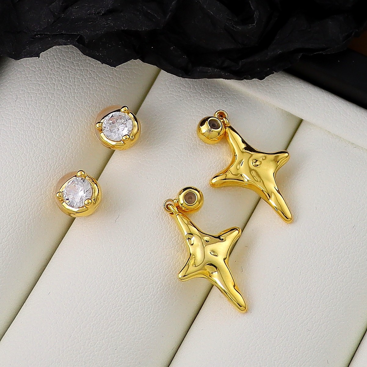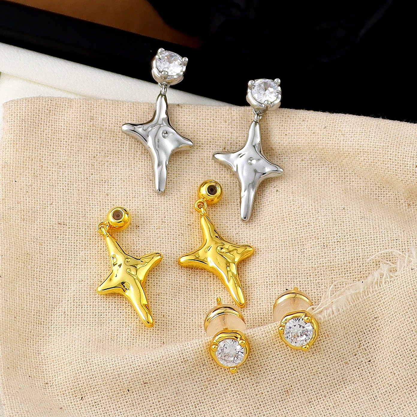 2025超火新款冷淡系耳饰S925银针银色锆石四芒星耳钉一款多戴耳环
