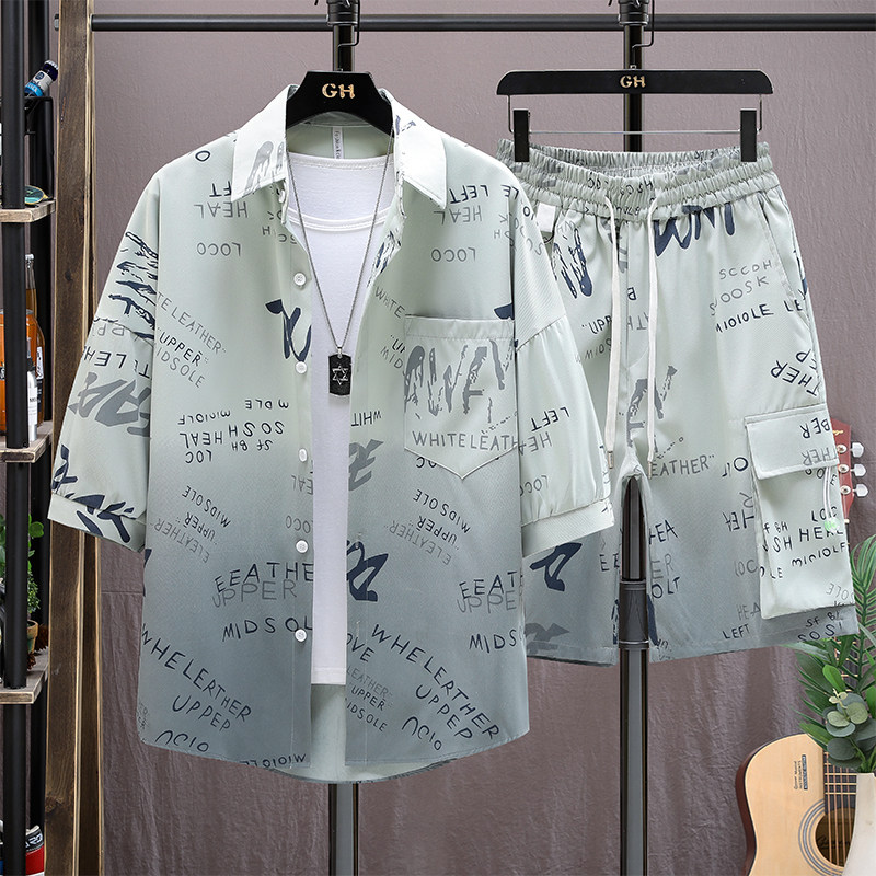 渐变色夏季衬衫男青年短袖