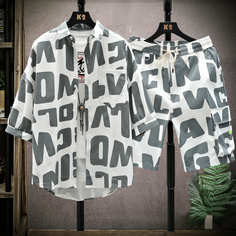 渐变色夏季衬衫男青年短袖冰丝七分袖衬衣潮牌士五分中袖薄款外套