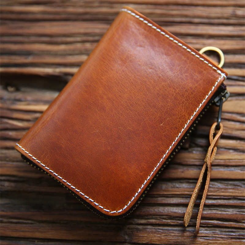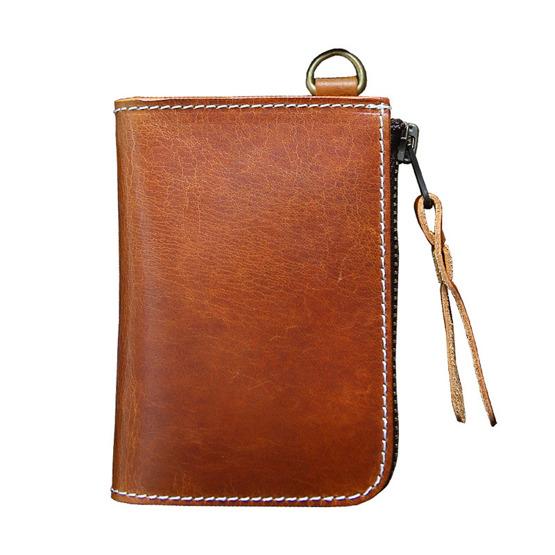 手工复古头层牛皮男士钱包真皮短款拉链钱夹竖款皮夹驾驶证卡包