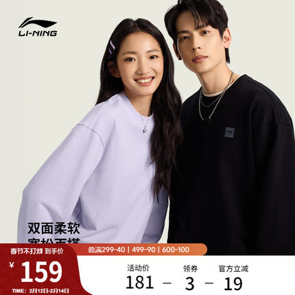 李宁卫衣女春季2026新款情侣宽松长袖休闲毛圈上衣针织运动服男士