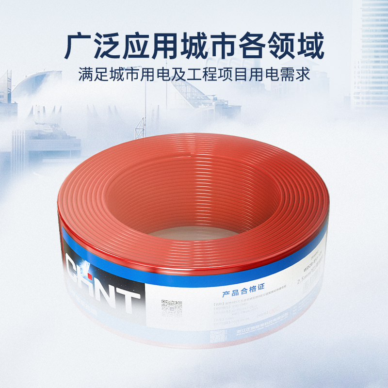 正泰电线家用硬线软线电缆105℃耐热低烟无卤2.5/4/6平方国标铜芯