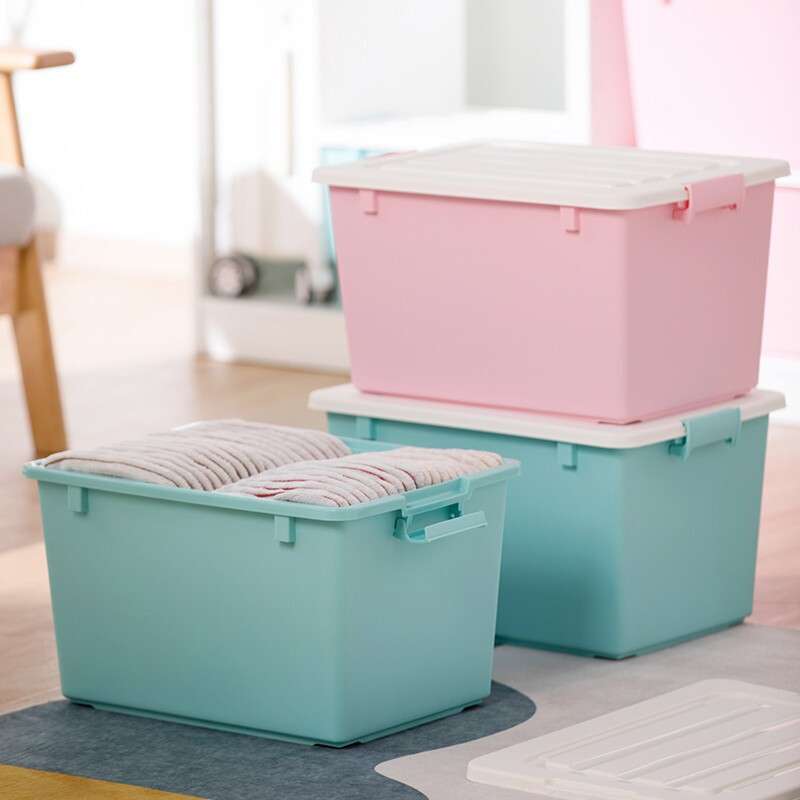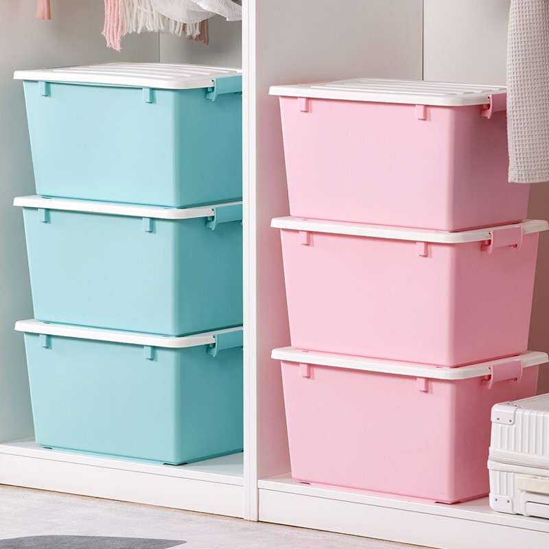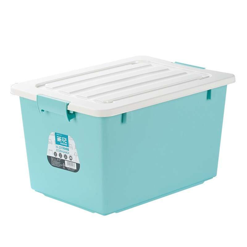 茶花收纳箱加厚塑料收纳箱整理带盖正方收纳箱搬家带轮储物箱