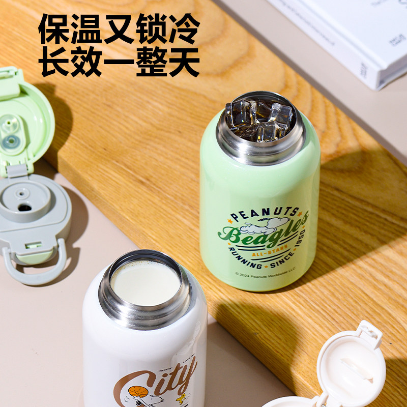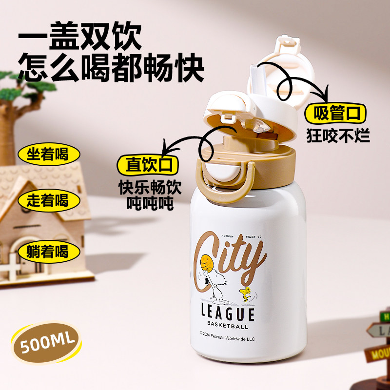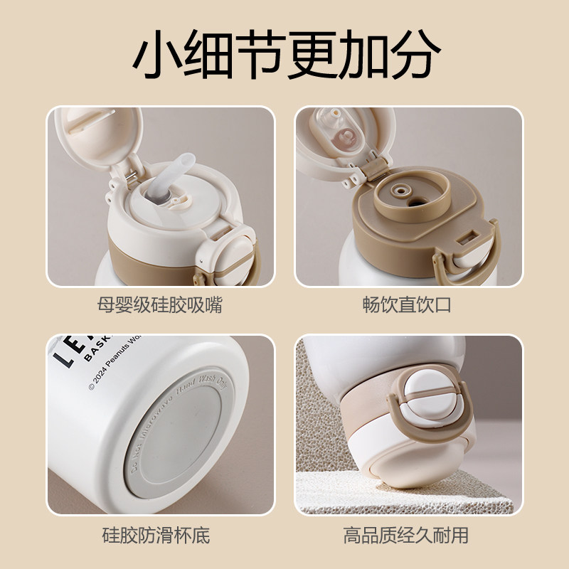 史努比吸管保温杯女生高颜值316L不锈钢男儿童水杯子学生上学专用