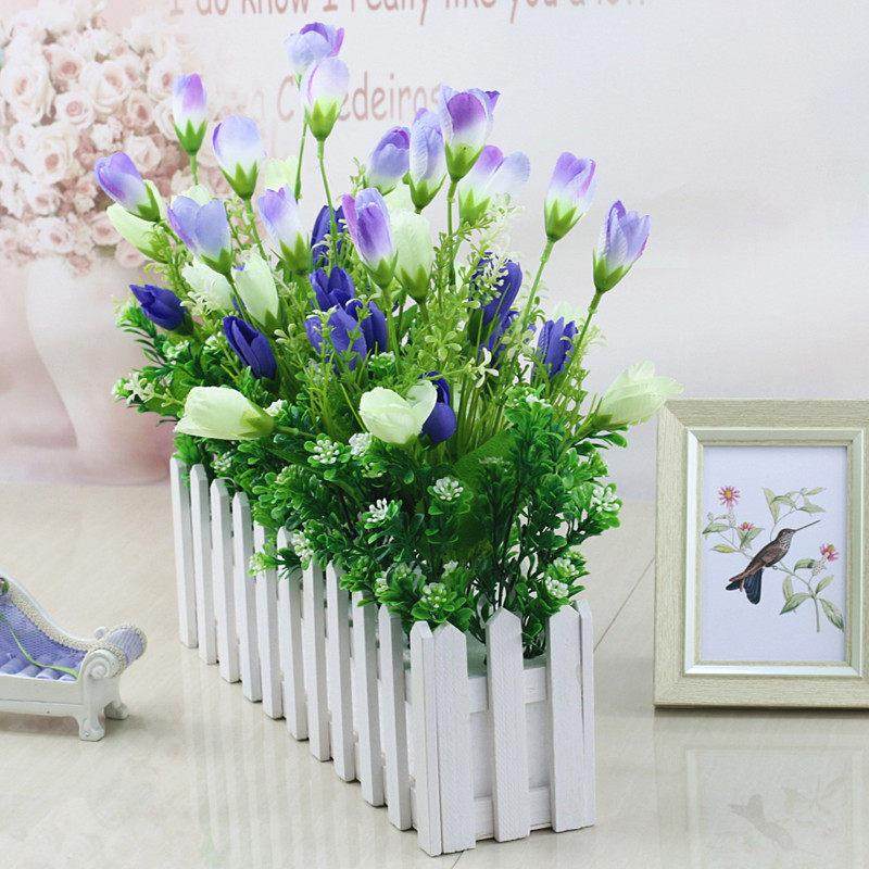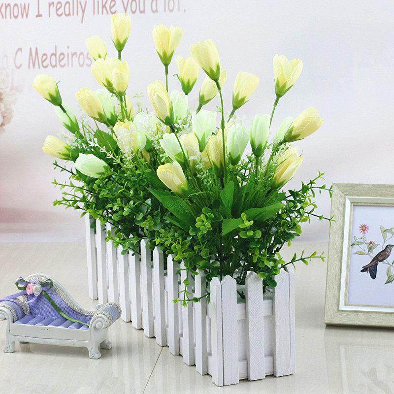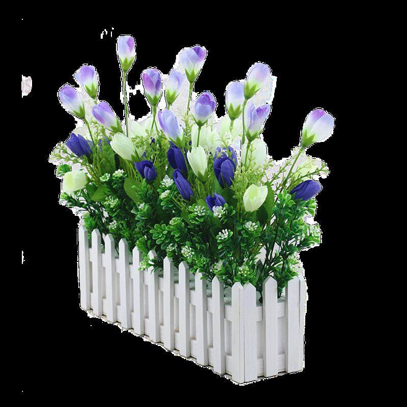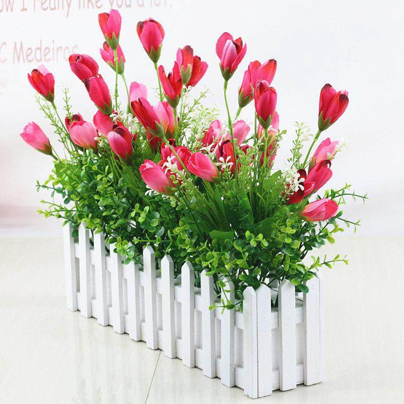 仿真花假花塑料花桌面墙角遮挡仿真绿植盆栽摆件郁金香栅栏花套装