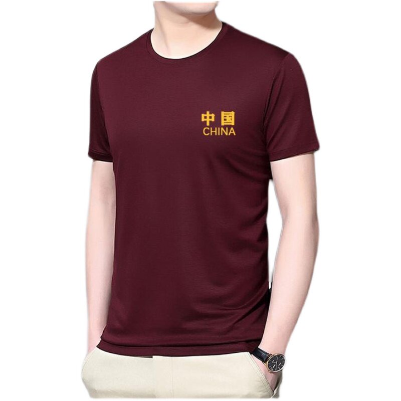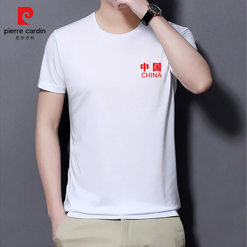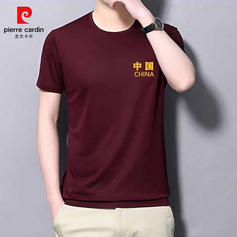 皮尔卡丹短袖T恤男夏季中国风圆领冰丝刺绣上衣时尚中年半袖体恤.