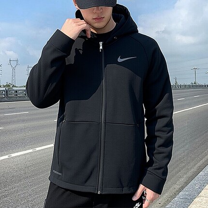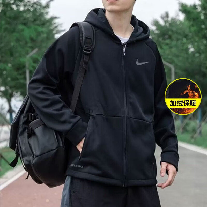 NIKE耐克冬季新款加绒外套男士连帽上衣厚款保暖运动装训练服夹克