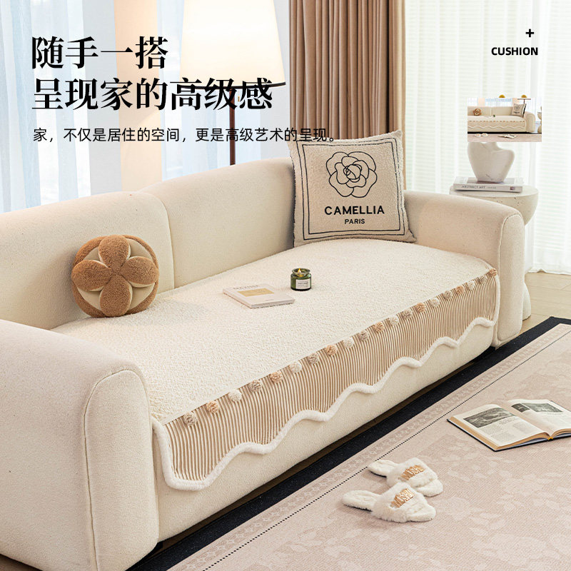 秋冬季沙发垫高级感毛绒加厚盖布2026新款四季通用固定防滑坐垫子