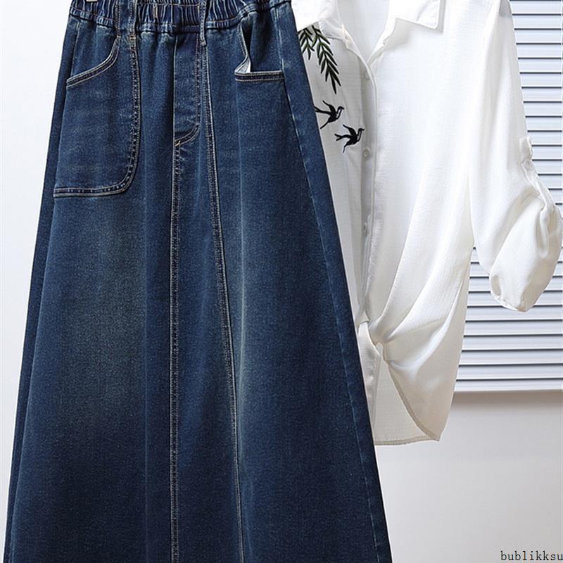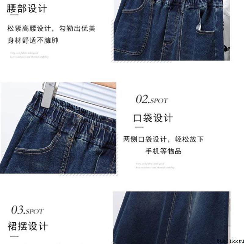 品牌折扣女秋装胖MM遮胯显瘦高腰中长a字裙覆古弹力牛仔半身裙女
