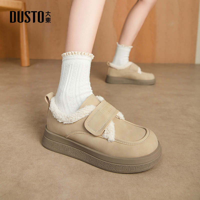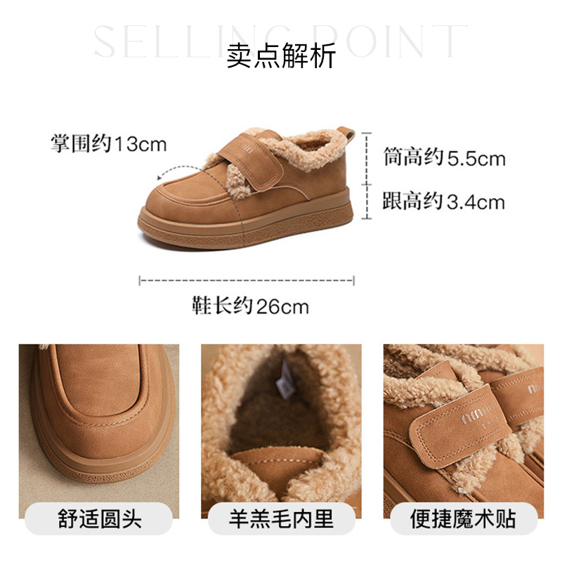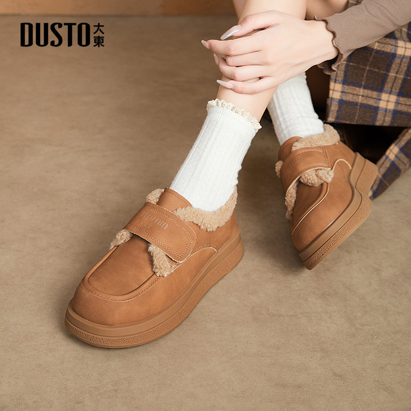 大东2025冬季新款女鞋时尚休闲棉鞋百搭舒适圆头魔术贴深口雪地靴