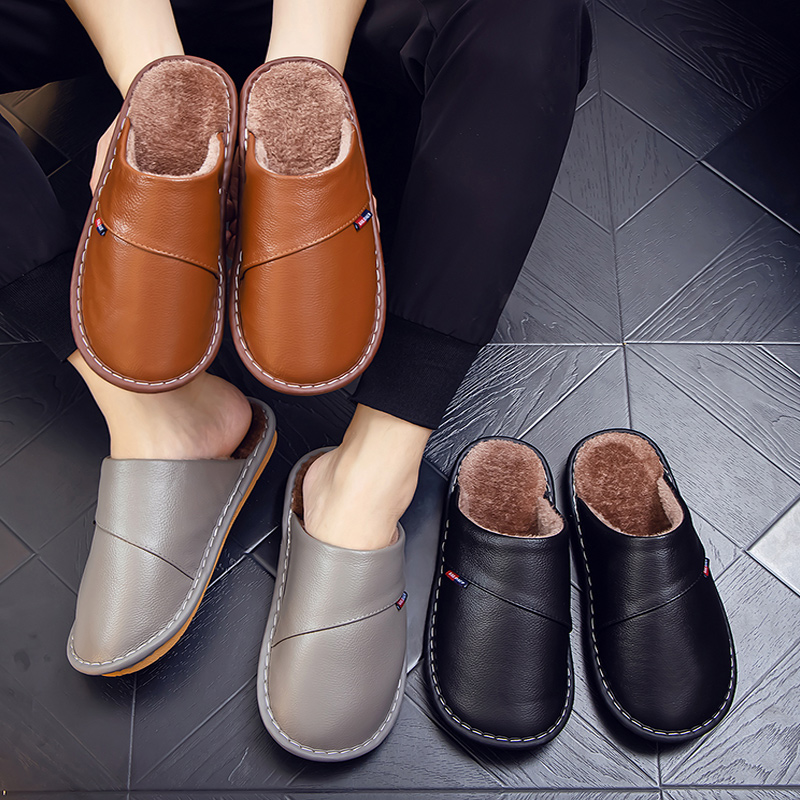 海宁真皮拖鞋居家室内女厚底防水防滑牛皮面家用保暖棉拖鞋冬季男