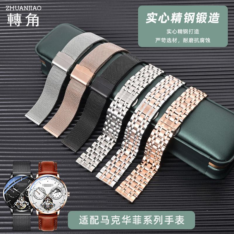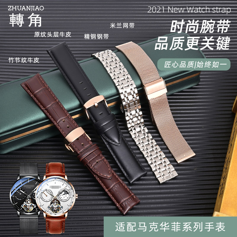 适配马克华菲手表带真皮钢带男士