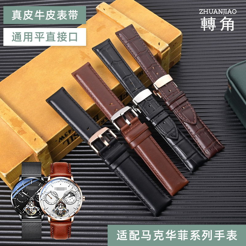 适配马克华菲系列表带真皮男士牌陀飞轮手表链机械表男镂空皮表带