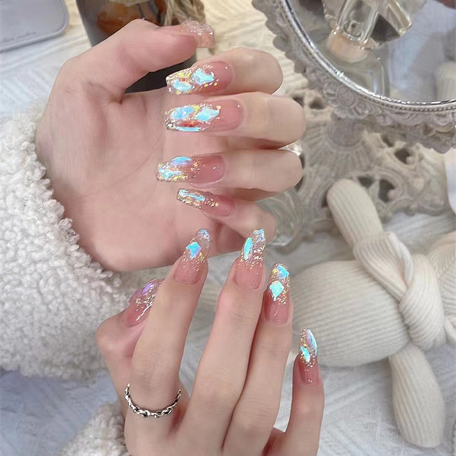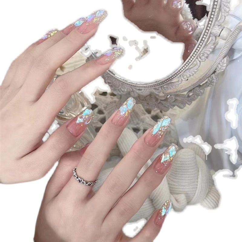 假指甲日系爆闪幻彩闪钻美甲婚甲可拆卸穿戴甲手工光疗成品甲片