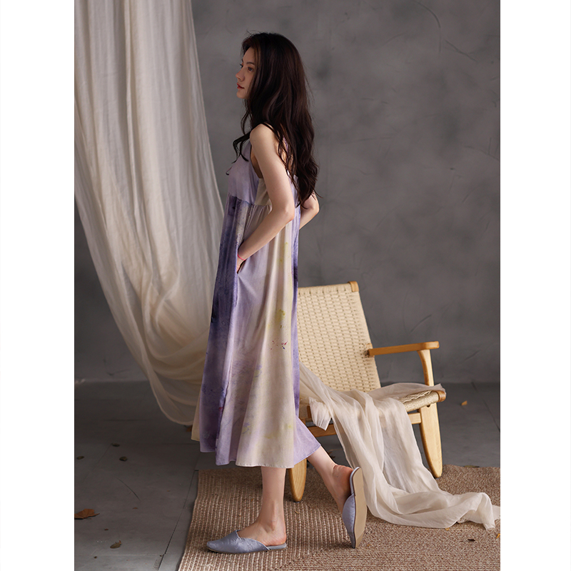 带胸垫吊带睡裙女士睡衣夏季莫代尔长款夏天冰丝渲染高级感连衣裙