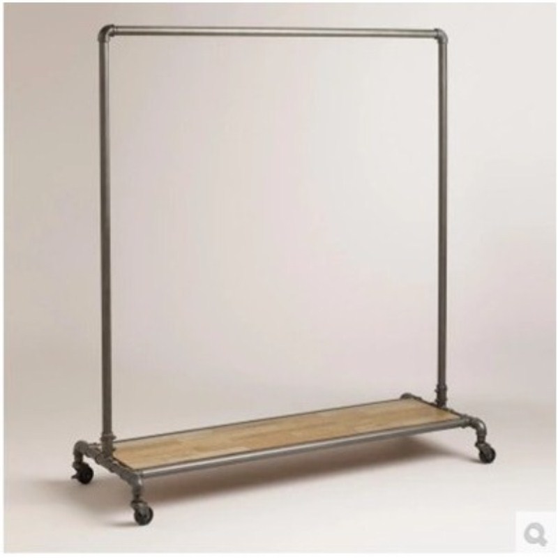 美式铁艺实木复古做旧服装店展示架水管龙门架落地挂衣帽架带滚轮