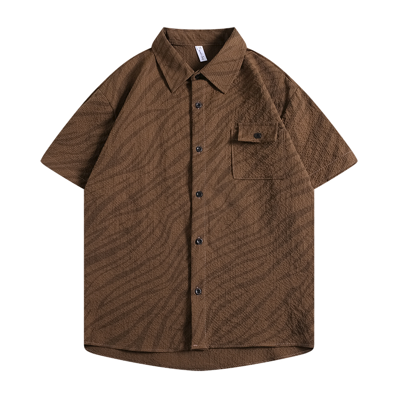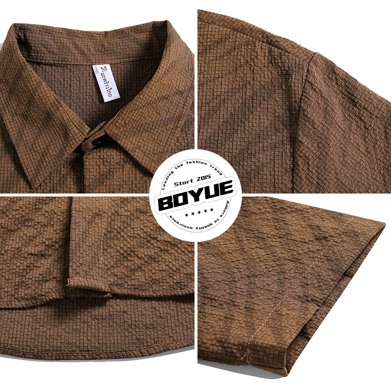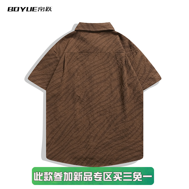 BOYUE帛跃美式复古夏季薄款短袖衬衫男女高级感泡泡纱美拉德上衣
