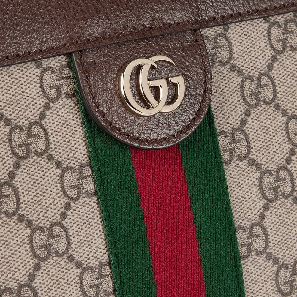 自营欧洲直邮Gucci/古驰 Ophidia系列女士米白/深棕色帆布双G织带