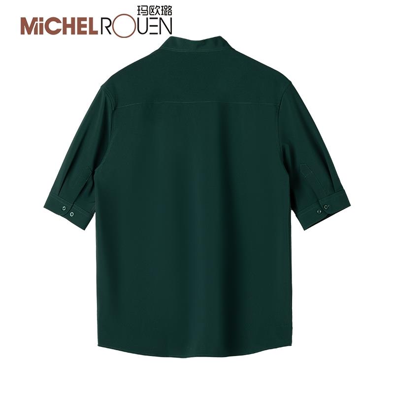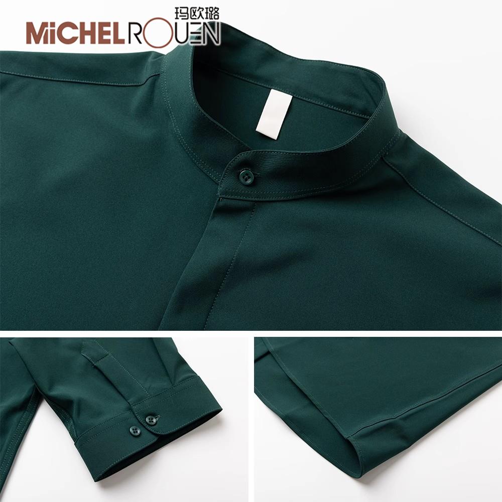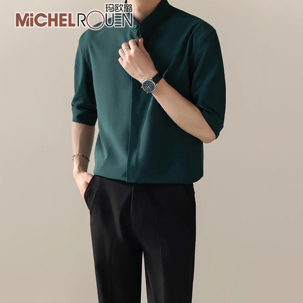 玛欧璐奢侈品牌夏季短袖衬衫男休闲商务高级立领修身免烫冰丝衬衣