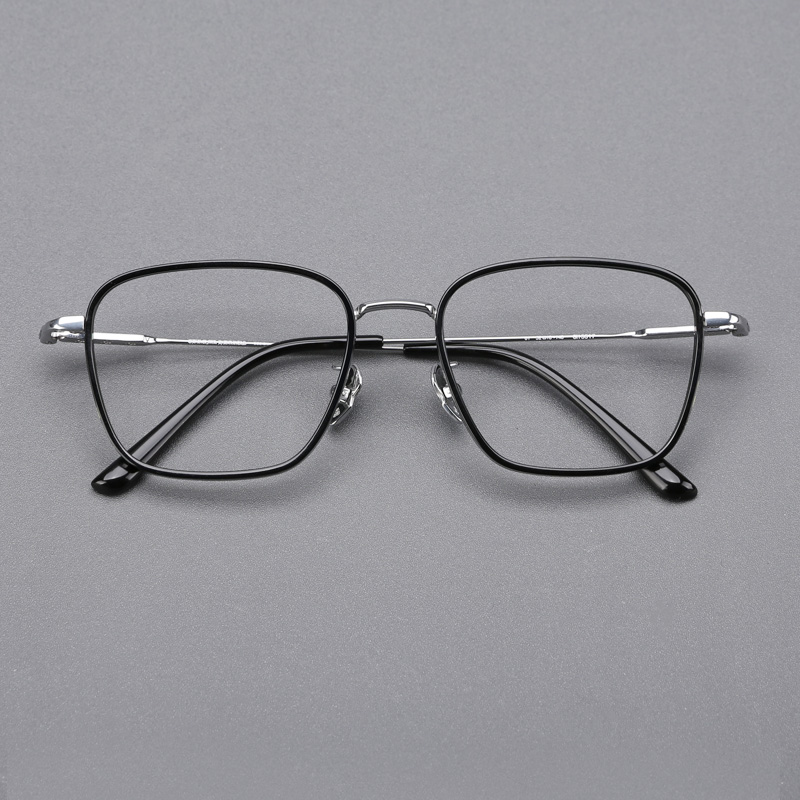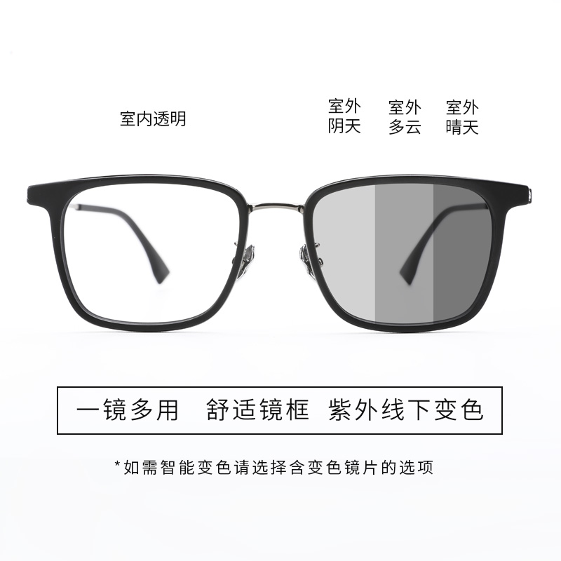 木川纯钛眼镜框男女同款超轻钛架方圆大脸镜架可配度数黑银色近视