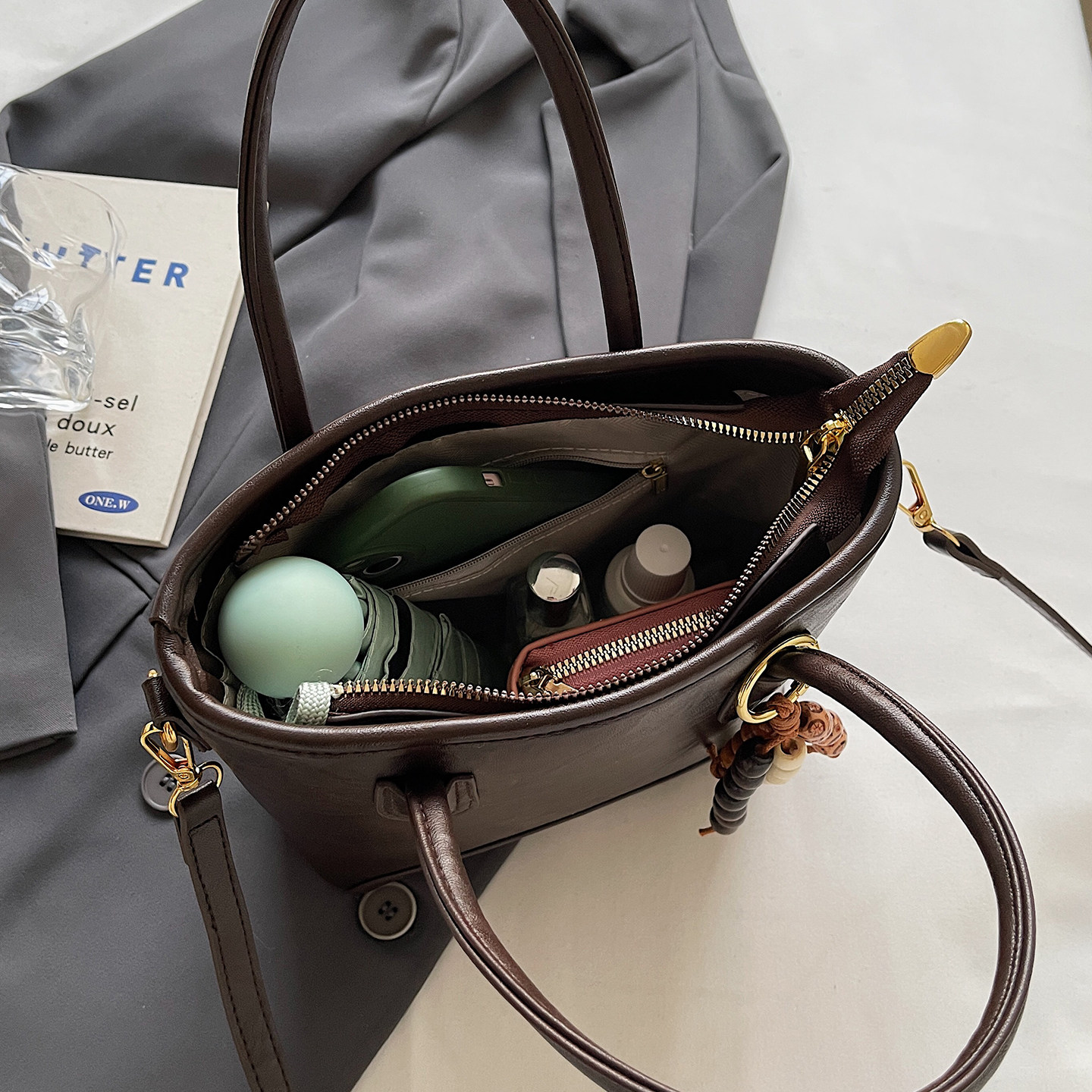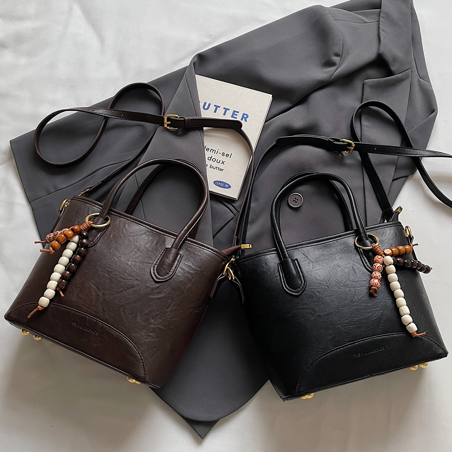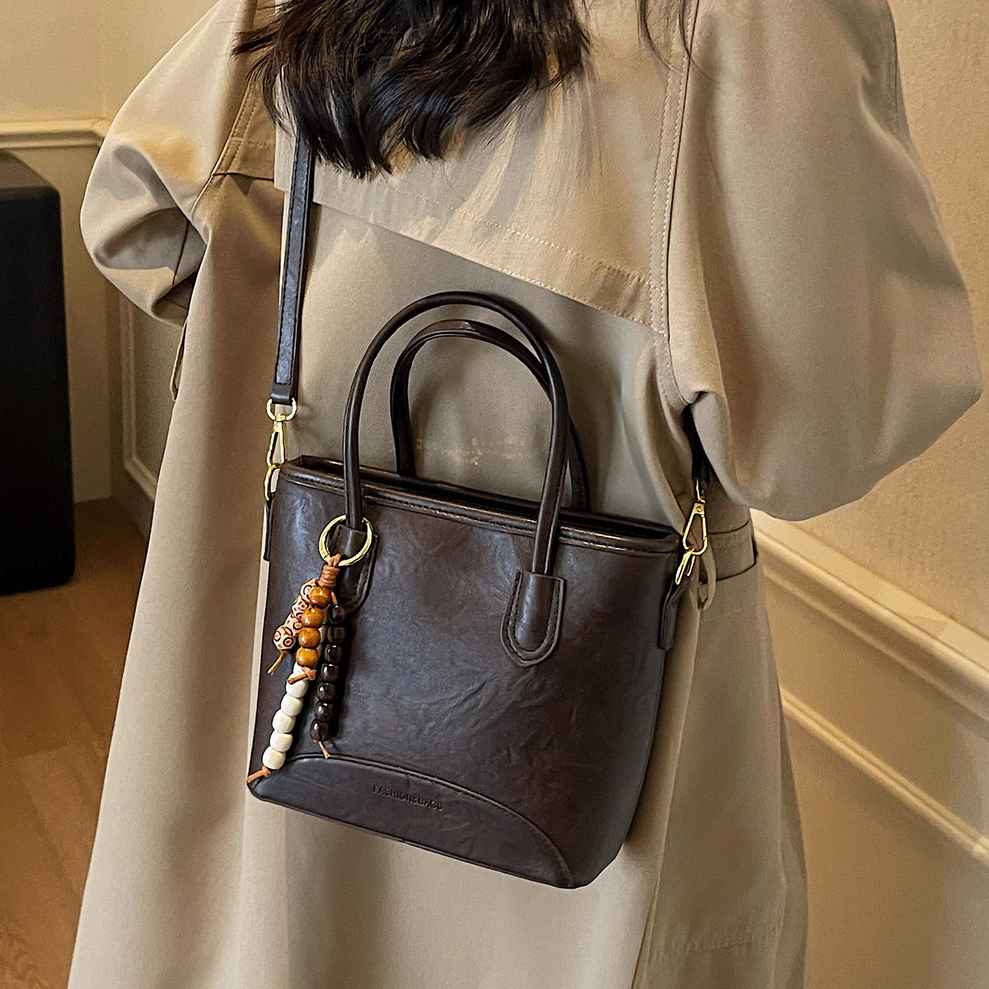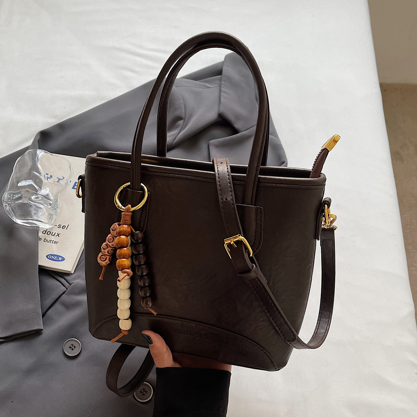 复古质感水桶包手提单肩包