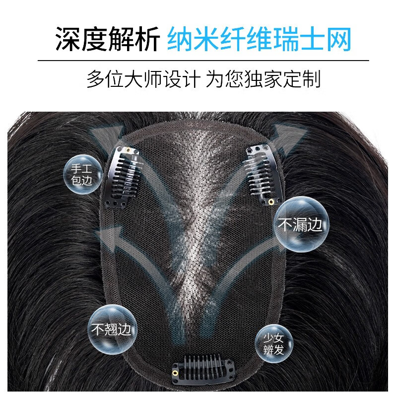 假发片女士头顶补发片全真人发丝轻薄刘海自然无痕遮白发遮盖神器
