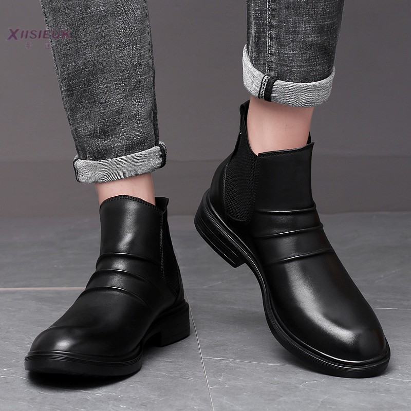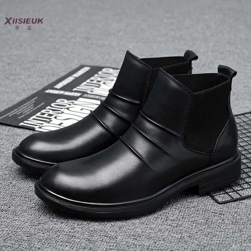 2025新款男士切尔西靴真皮马丁靴英伦高帮皮鞋发型师商务短筒皮靴