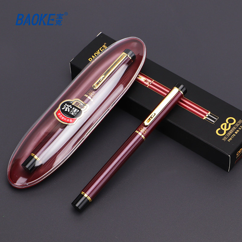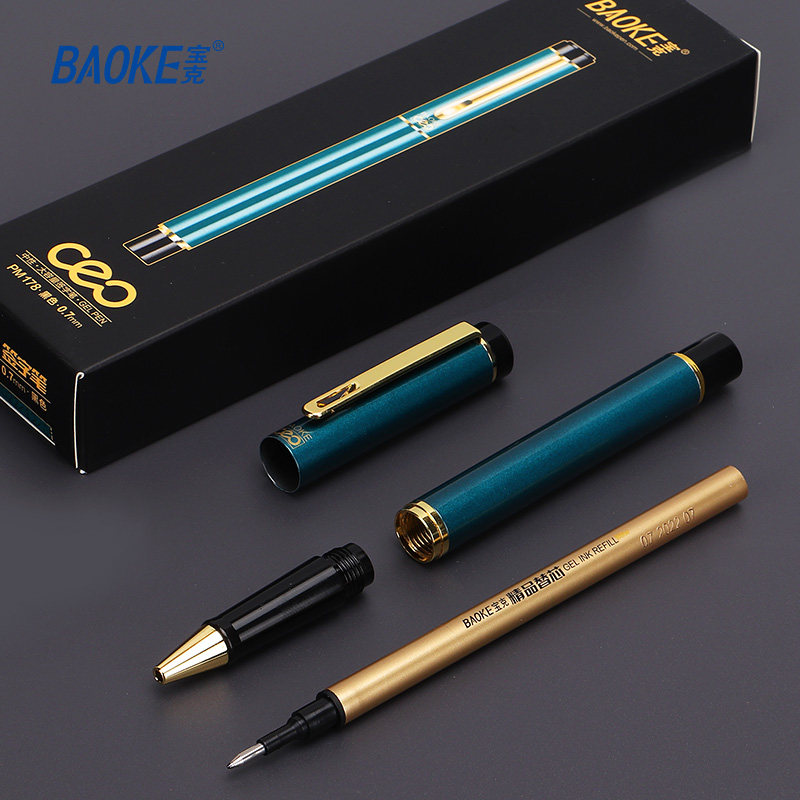 宝克0.7mm全金属大容量中性笔重手感水笔学生用碳素笔黑色办公签字笔商务高档高颜值硬笔书法练字笔金属笔夹