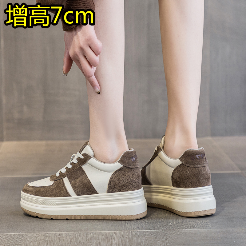 真皮松糕厚底小白鞋黑白熊猫女鞋内增高小码休闲鞋313233板鞋百搭