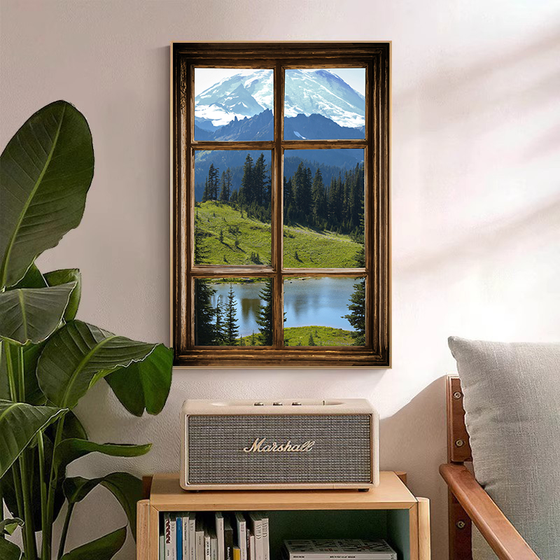 假窗户风景客厅沙发背景墙装饰画治愈高级感桌面摆画卧室玄关挂画