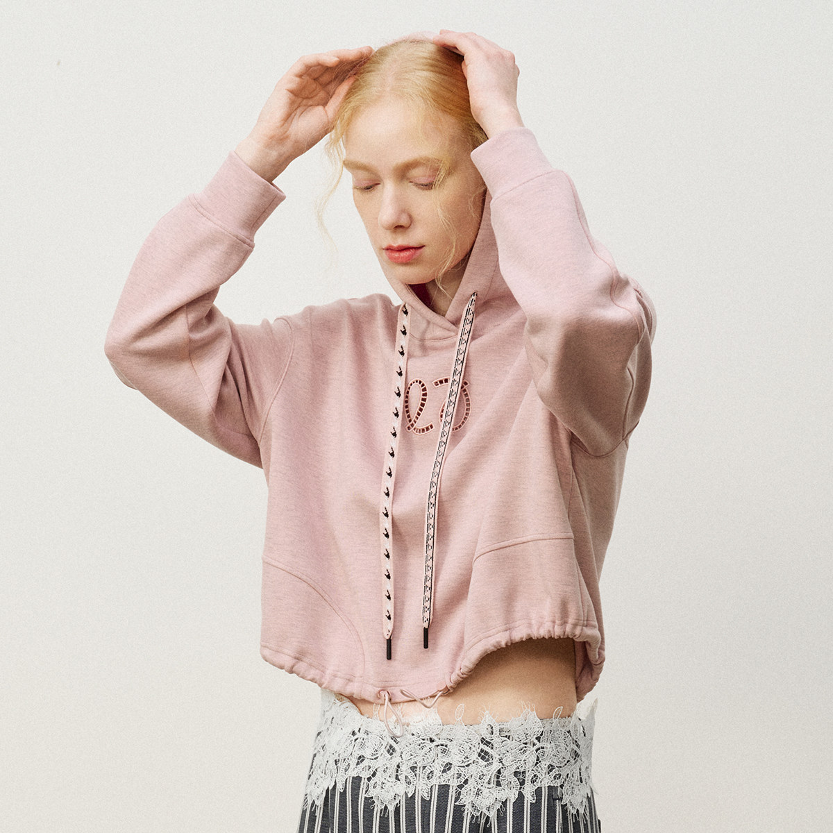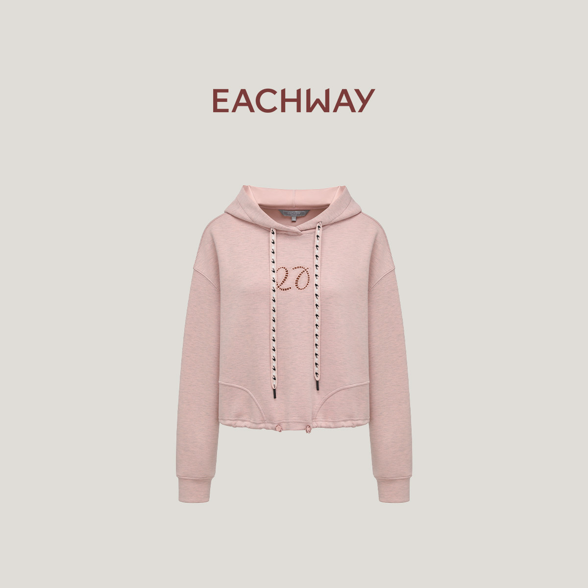 艺之卉字母镂空标连帽印花抽绳下摆藕荷卫衣2026高智动感