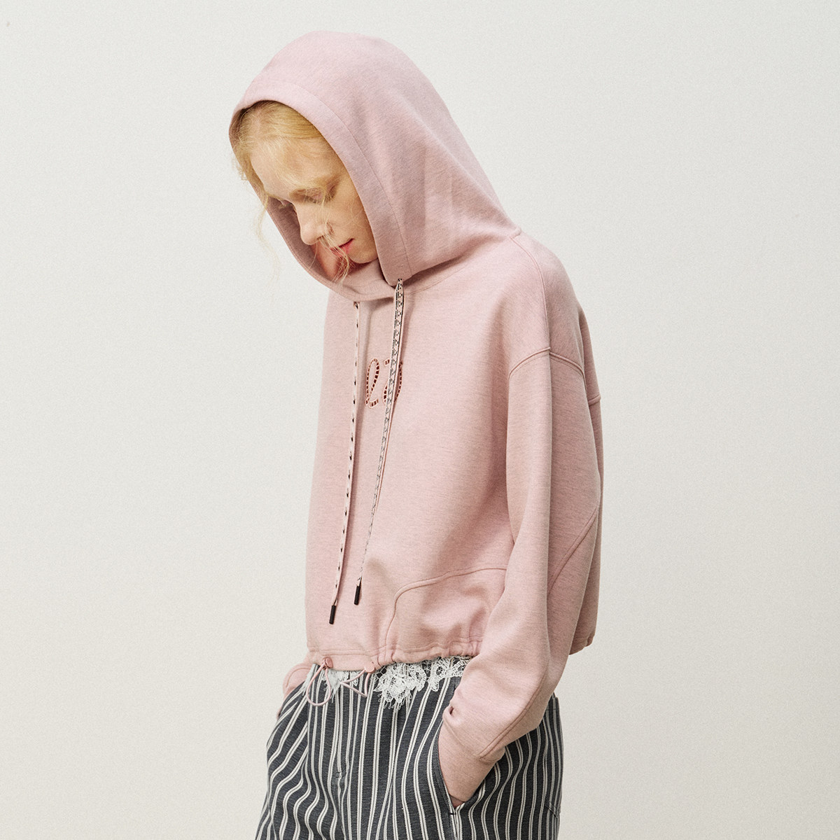 艺之卉镂空标识抽绳下摆连帽卫衣