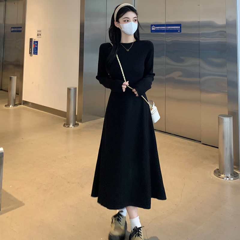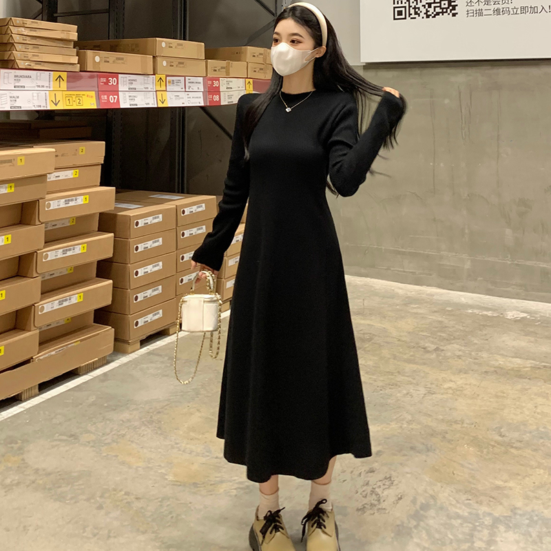 大码女针织配大衣胖mm秋冬新款显瘦白色毛衣内搭打底小个子连衣裙