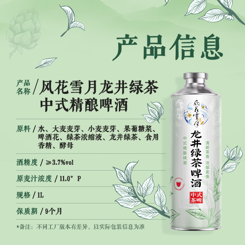 风花雪月中式精酿茶啤龙井绿茶啤酒1L装新品上市