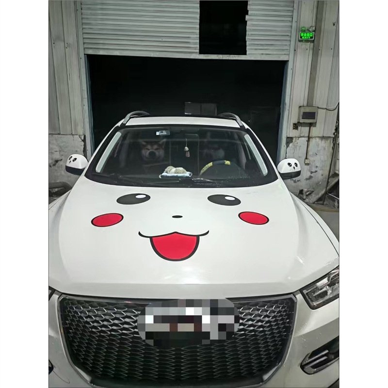 皮卡丘笑脸车头盖贴拉花卡通个性引擎盖汽车贴纸可爱划痕装饰车贴