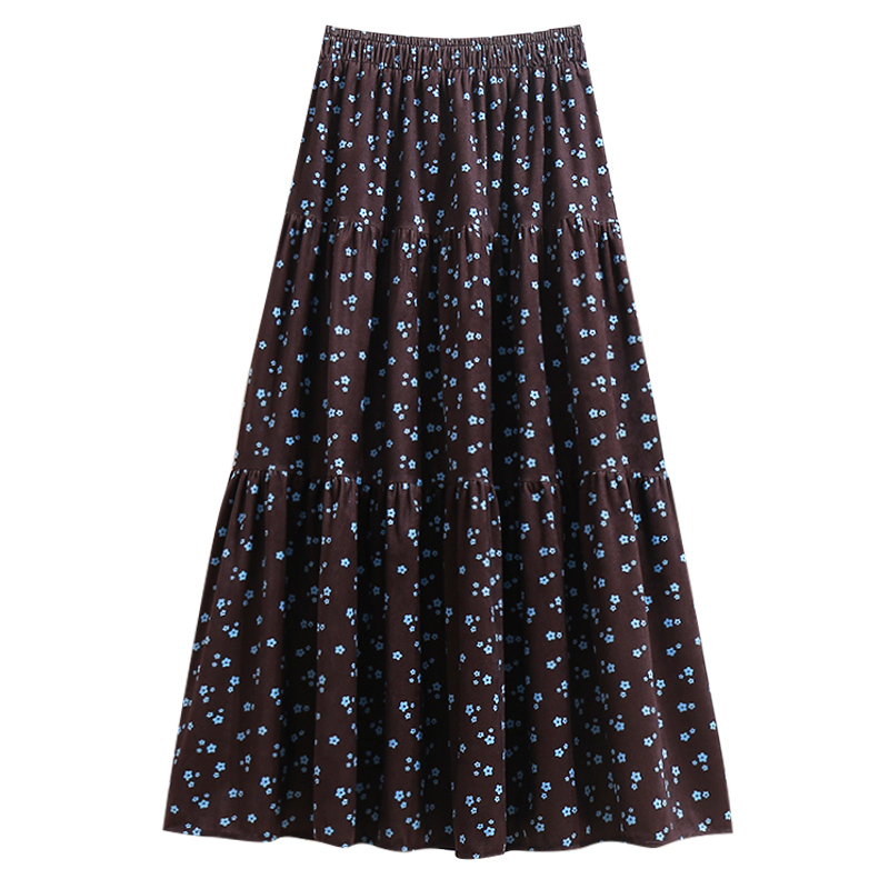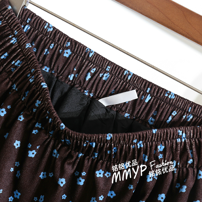 秋冬印花丝绒拼接大摆半身裙女秋季2025新款松紧腰中长款蛋糕裙子